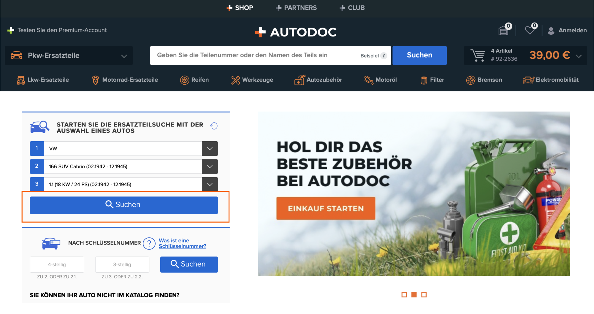 Suche anhand der Fahrzeugdaten und der Schlüsselnummer