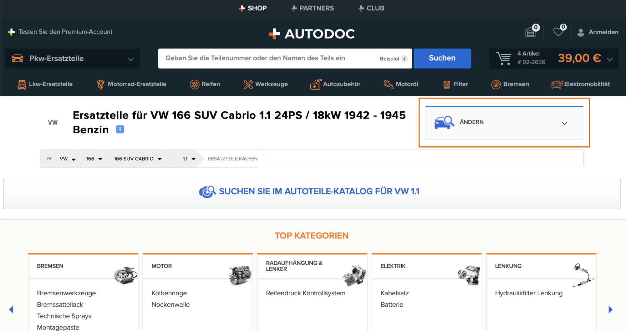 Wenn du bei der Eingabe der Fahrzeugdaten einen Fehler gemacht hast, kannst du ihn auf der Katalogseite korrigieren, indem du auf ÄNDERN klickst.
