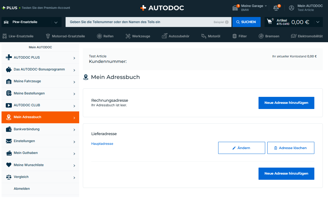Beachten Sie, dass die zuletzt von Ihnen hinzugefügte Adresse automatisch im Warenkorb hinterlegt ist, wenn Sie die Bestellung aufgeben. Sie müssen sie nicht manuell eingeben.