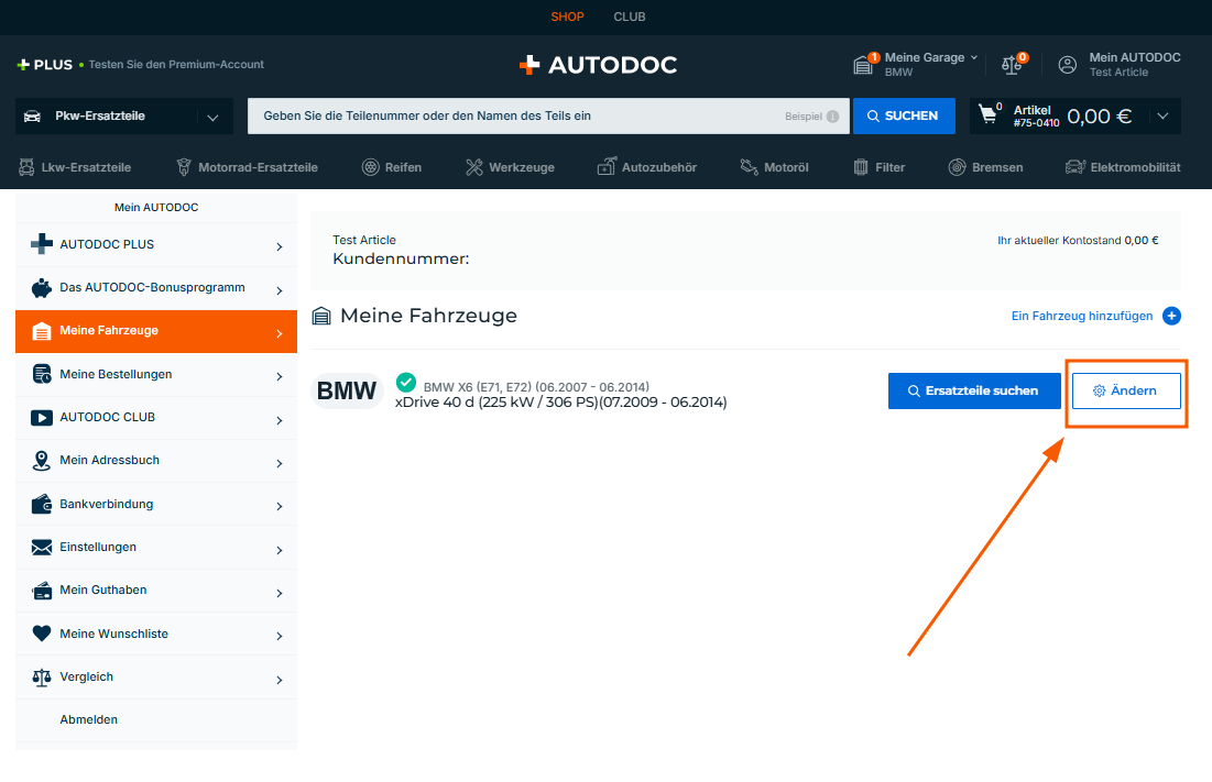Wenn Sie die Fahrzeugdetails für Fahrzeuge in Ihrer Garage ändern möchten, klicken Sie auf „Ändern“, bearbeiten Sie die Daten und speichern Sie Ihre Änderungen.