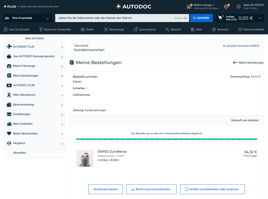 Weitere Informationen zu einer bestimmten Bestellung finden Sie unter "Bestelldetails". Klicken Sie auf "Bestelldetails", um den Kauf erneut durchzuführen, die Rechnung herunterzuladen oder eine Retourenanfrage zu stellen.