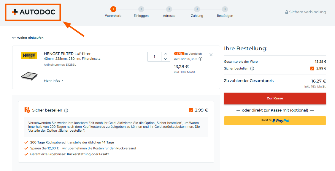 - Klicke auf das AUTODOC-Logo, um weiter einzukaufen