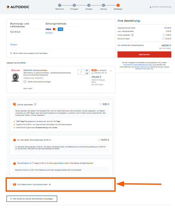 Im letzten Schritt des Bestellvorgangs, vor der Zahlung, kannst du den Bonus sehen, den du nach dem Kauf erhältst.